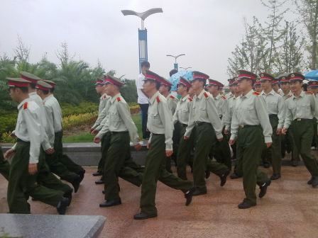 200多名09级新生精神饱满地列队集中在镜湖湖畔的升旗台前。6:55分雨驻,国防生身着军装,个个身姿挺拔,迈着整齐的步伐走向升旗台护卫五星红旗。7点整,在雄壮的国歌声中,五星红旗迎风徐徐升起,全体新生行注目礼。之后, happy漫画