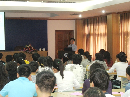 授聘仪式之后,俞飚教授作了题为“具有重要生理活性的复杂糖缀合物的合成进展”的学术报告。同时,作为校庆报告会内容之一,来自中国科学院上海市植物生理生态研究所的施明安研究员也作了题为“Nuclear caspase-2 activation in response to DNA damage”的学术报告,两场学术报告会受到与会师生的热烈欢迎。