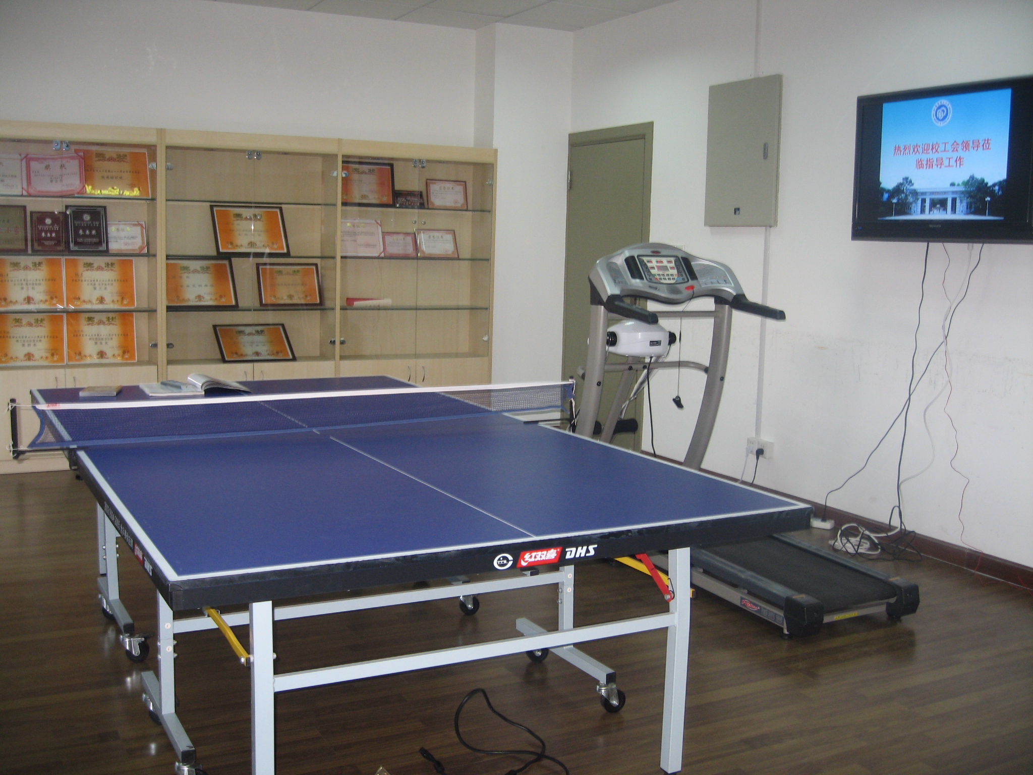 教工小家活动室,工会主席刘桂霞老师就活动室内的新型多功能液晶彩电、卡拉ok设备、跑步机、乒乓球桌等进行了介绍与演示,整个教工小家活动室的建设与布置得到了全体工作小组成员的一致认可。活动室的橱窗内整齐陈列着 happy漫画