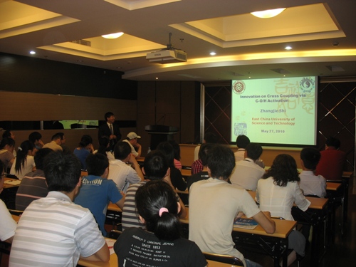 进行学术交流并于5月27日上午在实验18楼315会议室作了题为“Innovation on Cross Coupling via C-O/H Activation”的学术报告,报告由钱校长主持, happy漫画