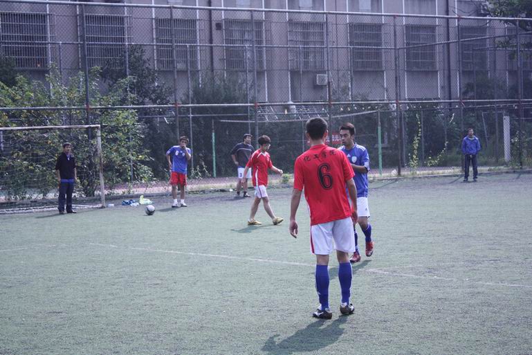 对化工学院的秋韵节足球比赛小组赛正式拉开序幕。双方在 happy漫画