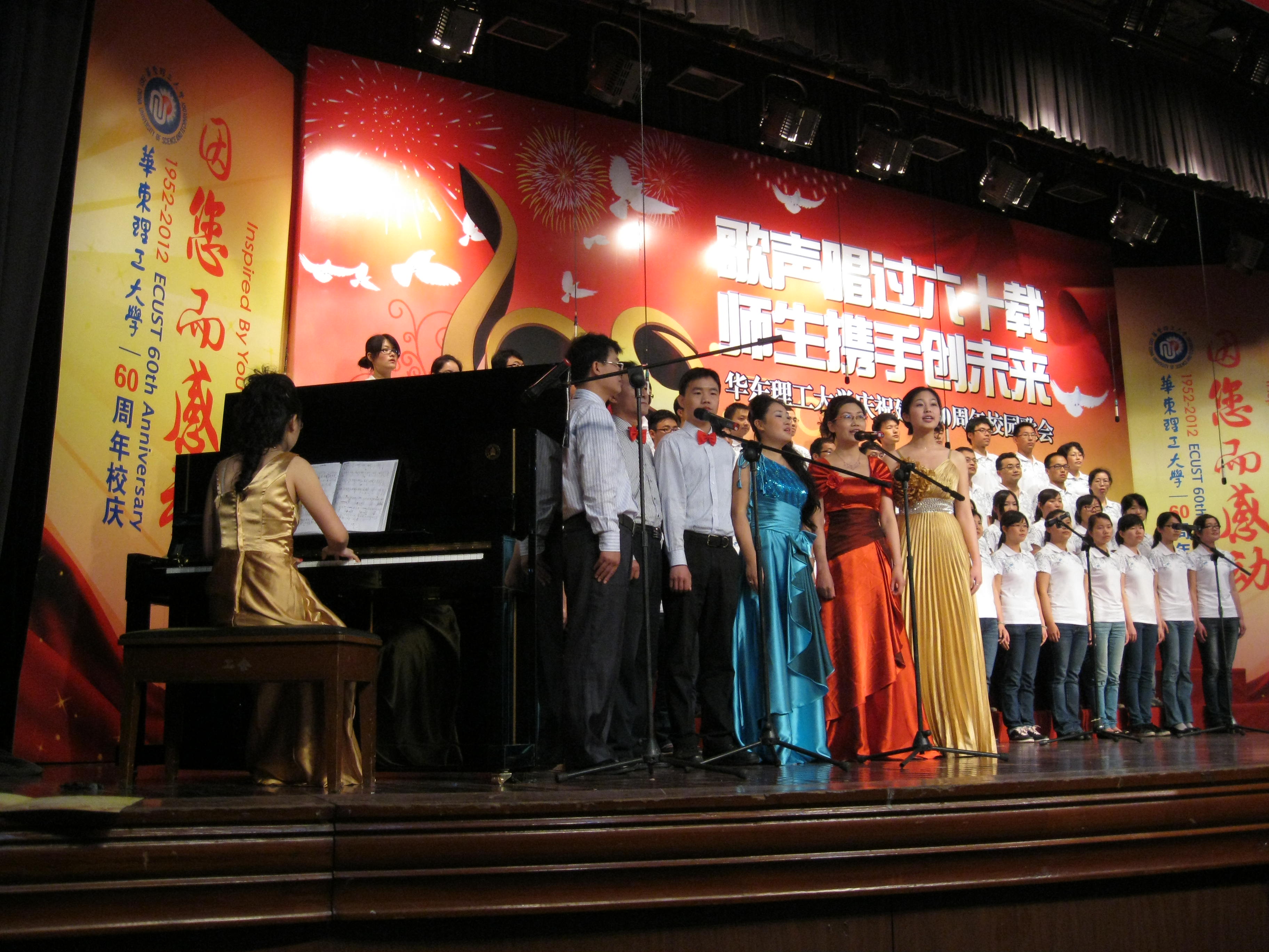 5月25日,我院60多名师生参加了以“歌声飘过六十年,师生携手创未来”为主题的“庆祝建校60周年校园歌会”比赛。我院代表队一上场,一首《祝你平安》娓娓道尽了我们对母校六十华诞的深深祝福,一曲《阳光路上》更是如实唱出了我们今天的幸福生活。此次参赛从组队到排练全院师生共同努力合作,唱出了 happy漫画 积极向上的精神风貌和团结奋进的昂扬斗志,共同为 happy漫画 六十华诞献礼。最终我院在此次比赛中获得了优胜奖的好成绩。