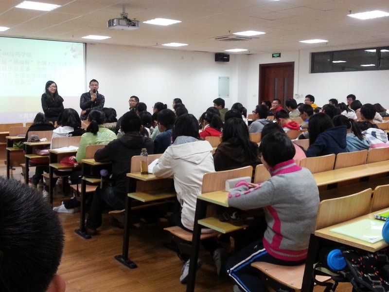 于11月22日,邀请在第十三届“挑战杯”全国大学生课外学术科技作品竞赛中获奖团队负责人陈显军、王霞来奉贤,与本科生进行交流,分享在科创方面的经验。