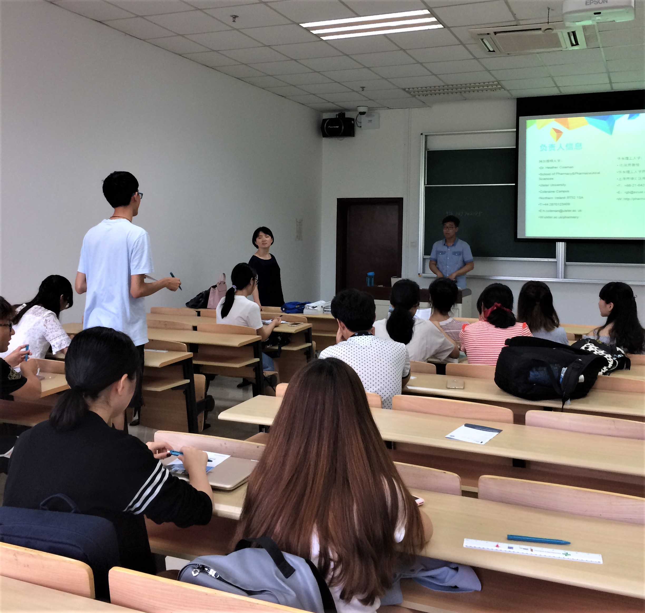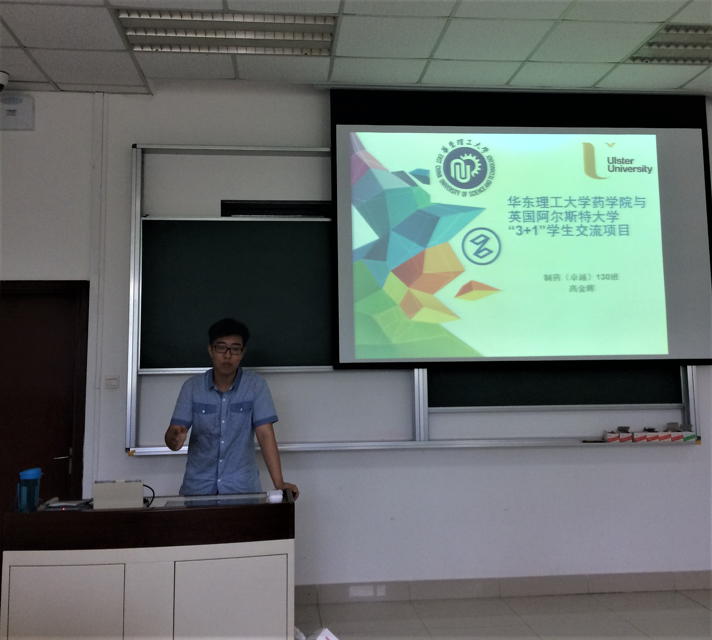 13级制药工程专业毕业生高金晖同学来奉贤校区与学院一、二年级本科生一起分享了他在英国Ulster大学进行“3+1”学习的经历。学院外事秘书何薇薇博士也参加了此次宣讲活动。交流宣传现场工作人员给同学们发放了来自Ulster 大学的小礼品和宣传手册。