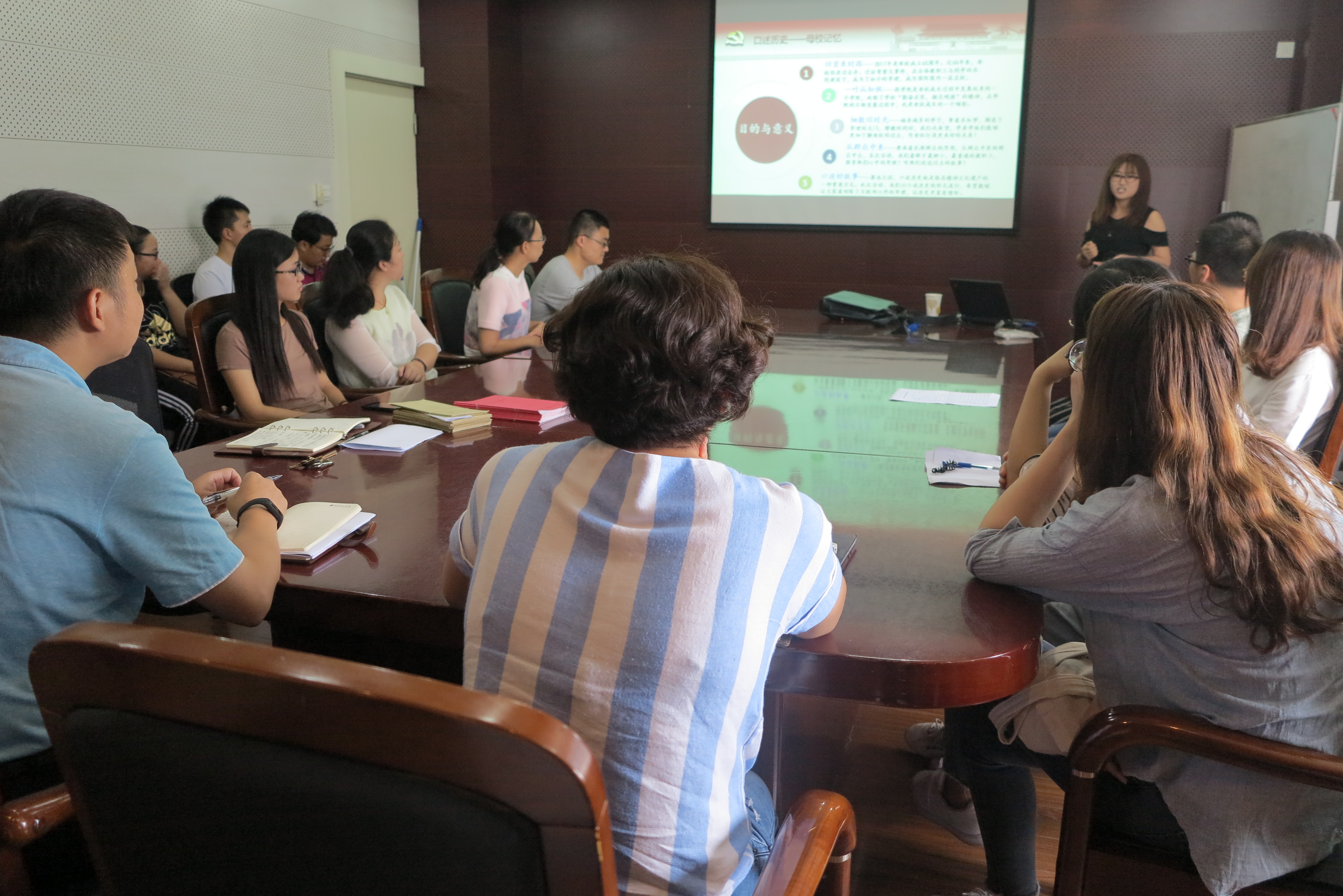 2017级研究生兼职辅导员杨泱泱等教师为2017级新生党支部书记做任前培训,紧密围绕习近平总书记重要讲话精神与“两学一做”学习教育常态化制度化的主题,务必坚持和落实“三会一课”等基本制度,结合学院党委下半年具体工作实施方案,对基层党支部主题党日和组织生活计划作出部署。