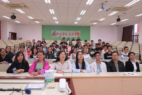 教学竞赛决赛邀请了4位教师评委及3位学生评委,有50余名2015级、2016级和2017级的本科生自愿报名当观众。根据现场抽签,付建军第一个上台,他从贴近同学生活的常识入手讲解了天然药物化学中的有关中药基础知识;梁欣展示了专业选修课程《免疫学基础》的抗体药物章节内容;张永强分享了抗精神病药物的作用机制、结构分类、以及吩噻嗪类抗精神病药物的发现和构效关系;陈晓蓓讲述的是化学位移相关谱中的hetcor谱图;毛斐讲解了专业核心课程《药物化学》中的抗生素知识;洪鸣凰陈述的是抗阿尔茨海默病,用简短的视频讲述了老年痴呆症的病理以及我们应该如何对待身边的这些患病的人群。每一场授课同学们都听得津津有味,不时拿起手机拍下他们感兴趣的PPT,场面互动不断,现场掌声不时响起。
