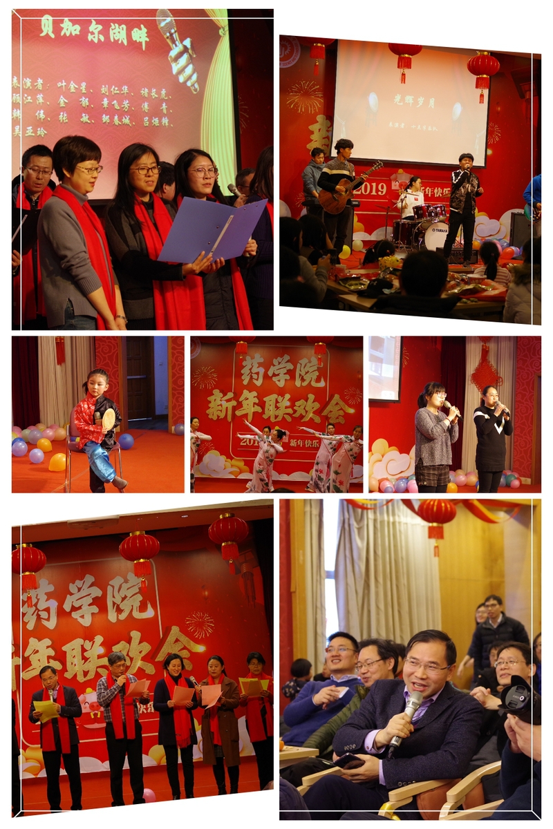 行政办公室牛婧等7名教师带来古典舞《忘尘谷》,副院长任国宾带来沪剧《燕燕说媒》,“药二代”们也带来了精彩纷呈的演出。联欢会设计了“红红火火”、“诗情画意”、“歌舞升平”三个赋有寓意的游戏环节,其中“歌舞升平”以药物结构式为题引,充分展现了学院特色。现场高潮迭起、氛围活跃,受到了学院教师的好评。