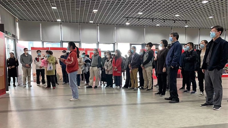 本次展览围绕“同心抗疫,教卫行动”这一主题,生动展现了上海教卫系统师生医护员工逆行一线、同心抗疫的家国情怀和爱岗敬业、精细管理的务实作风。讲解员为大家做了认真讲解。展览包括“党有号召 星夜驰援”“前线后方 精诚克敌”等六个部分。