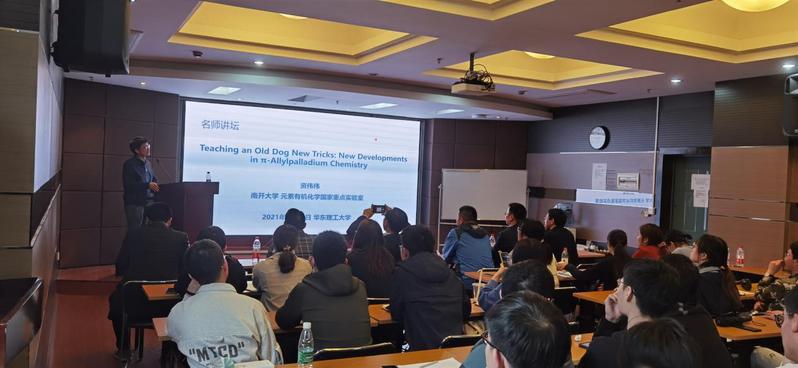 资伟伟研究员主要从事有机合成以及不对称催化方面的研究。在讲座中,他向在场师生详细介绍了他所研究的方向和课题的由来,并结合他们课题组近期取得的成果,阐述了有关π-烯丙基钯化学研究的新突破。深入的反应机理研究让在场师生受益匪浅。