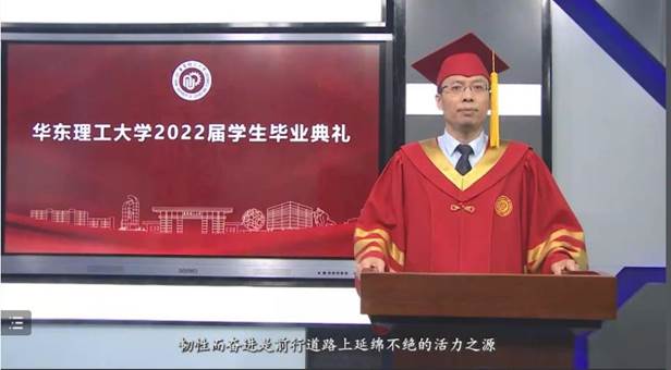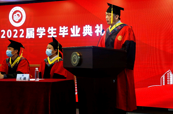 院长宋恭华在致辞中,从一位华理老学长、时代过来人身份表达对毕业生的殷切期望和真挚祝福,对2022届毕业生提出:永记校训,陶冶情操,报效祖国,把自身的前途命运同国家和民族的前途命运紧紧联系在一起,始终胸怀大局、心有大我;志存高远,坚持学习,自强不息,面对各种诱惑和挫折,坚持梦想、不抛弃、不放弃;谦虚律己,宽容待人,感恩社会,从格局上快速融入社会,接受社会和被社会所接受。