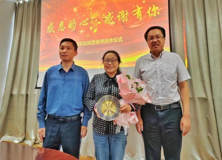 发展所做的贡献,对姚老师在本科教务工作中,长期以来的辛勤耕耘和无私奉献深表敬意,衷心祝愿姚老师退休生活幸福美满,并真诚地希望姚老师“退休不褪色”,为学院工作继续发光发热。