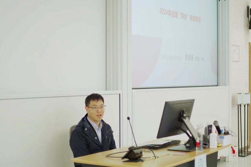 周建勇从全国两会的概念、历史演进、性质职权与构成、召开的背景与议程、主要内容等六个方面做了详实的介绍。重点传达了习近平总书记在全国两会期间的重要讲话精神,并围绕大会通过的各项报告,新质生产力、高质量发展等两会热点谈了思考和体会。