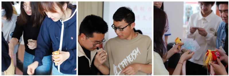 中医药科普志愿队”成员介绍了团队活动开展情况,号召同学们积极参与到中国青年志愿者事业中,在志愿服务的过程中诠释青春的价值。团队还准备了薄荷、香茅草、茉莉、艾草等中药材现场指导大家制作香囊。