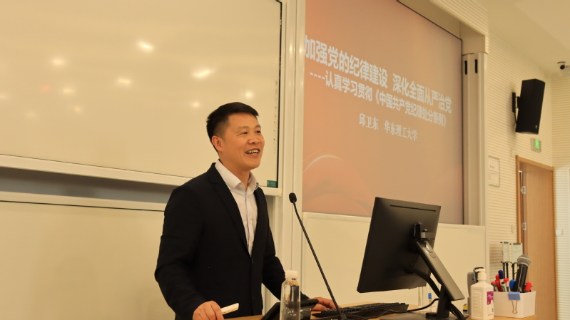 邱卫东的演讲围绕两个问题展开,通过回答“为什么全面从严治党是当前面临的一项重要历史任务与”以及“为什么十八大以来管党治党宽松状况得到根本的扭转”,带领师生党员们进一步深入学习了《中国共产党纪律处分条例》。他表示全面从严治党是马克思主义政党建设的一贯要求,强化党纪学习教育有利于维持我党的纯洁性;面对目前存在的严重违犯党纪国法,违反政治纪律与政治规矩的现象,只有坚持反腐败斗争,才能真正做到关乎民心,为人民谋幸福。党的十八大以来,我党始终把政治建设放在首位,坚持全面推进党的组织建设,始终绷紧作风建设这根弦,拧紧纪律的螺丝钉,党建设的自觉性不断提高,管党治党宽松的状况得到了根本的扭转。坚决打赢反腐败斗争攻坚战持久战,必须在铲除腐败问题产生的土壤和条件上持续发力、纵深推进。