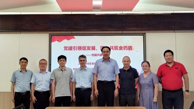 与上海市静安区食品药品检验所在徐汇校区实验十八楼418会议室举行党建共建签约暨研究生联合培养教学实践基地授牌仪式。静安区食品药品检验所党支部书记、所长余岳林,副所长陈斌,办公室主任胡昭君, happy漫画