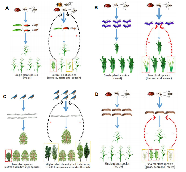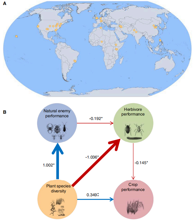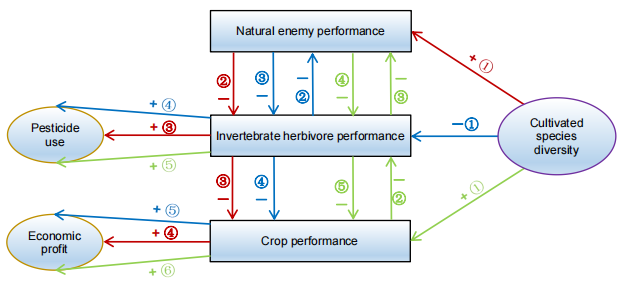 1:全球作物多样性种植促发天敌、害虫、作物的营养级联动